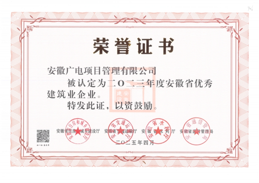 近期,安徽省住房和城乡建设厅会同省交通运输厅、省水利厅、省通信管理局联合公布了“2023年度安徽省优秀建筑业企业”名单,安徽广电项目管理有限公司榜上有名,成为全省获此殊荣的16家工程招标代理类优秀建筑业企业之一。